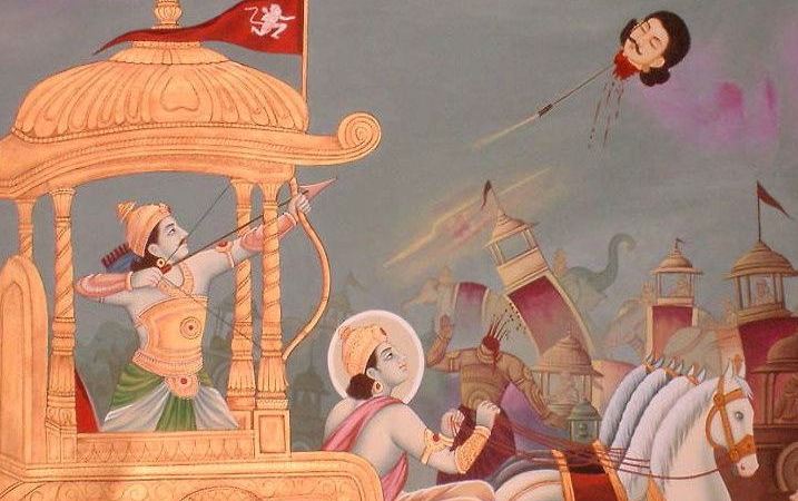 Arjuna understood the trick and arrowed Jayadratha and killed.